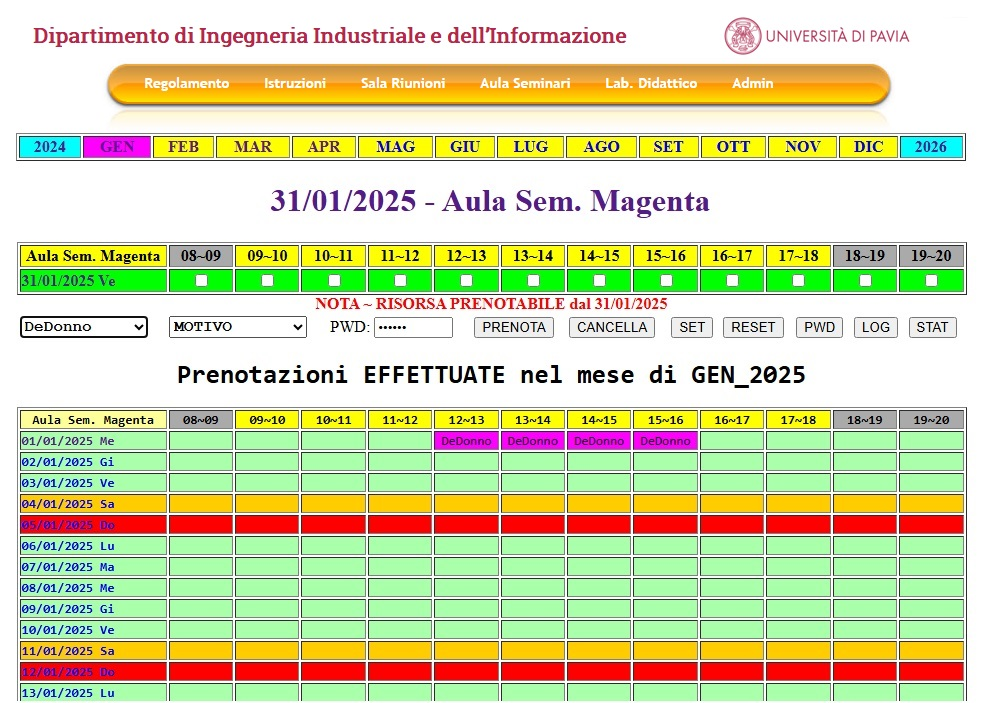 Per effettuare/annullare una prenotazione selezionare in sequenza: