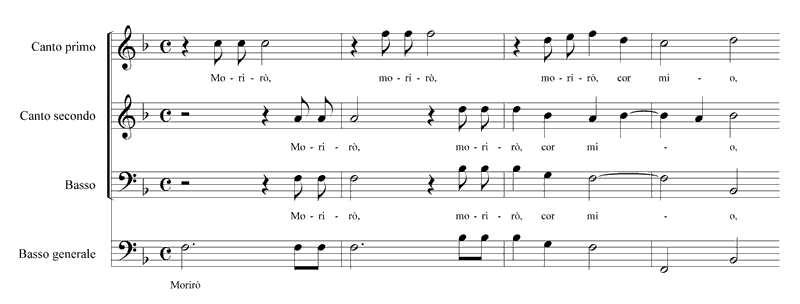 Esempio 4a Amante Franzoni: Poss’io prima morire (batt. 1-6) |